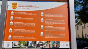 In Bretzenheim a. d. Nahe werden die KuLaDig-Objekte des Historischen Ortsrundgangs auf einer großen Infotafel angezeigt. Mittels QR-Codes können die insgesamt neun Objekte der Tour angesteuert werden.