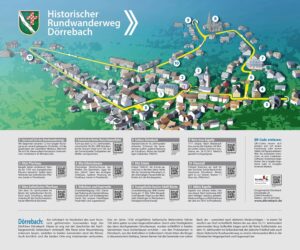In Dörrebach liegen neben der großen Infotafel im Ortszentrum auch Flyer in der Tourist-Information aus: