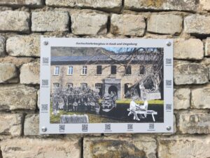QR-Codes ermöglichen den Zugang zu den digitalen Inhalten in KuLaDig. Neben vertiefenden Informationen, weiteren historischen Abbildungen der Traud sowie Textauszügen aus Ute Bales biografischen Roman sind dort auch Zeitzeugeninterviews in Form von Audiodateien abrufbar.